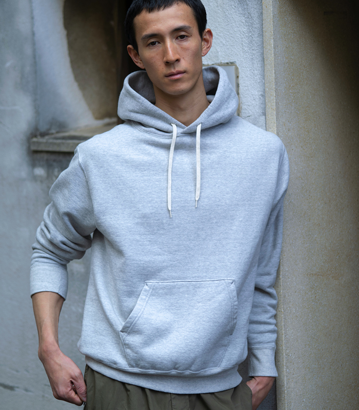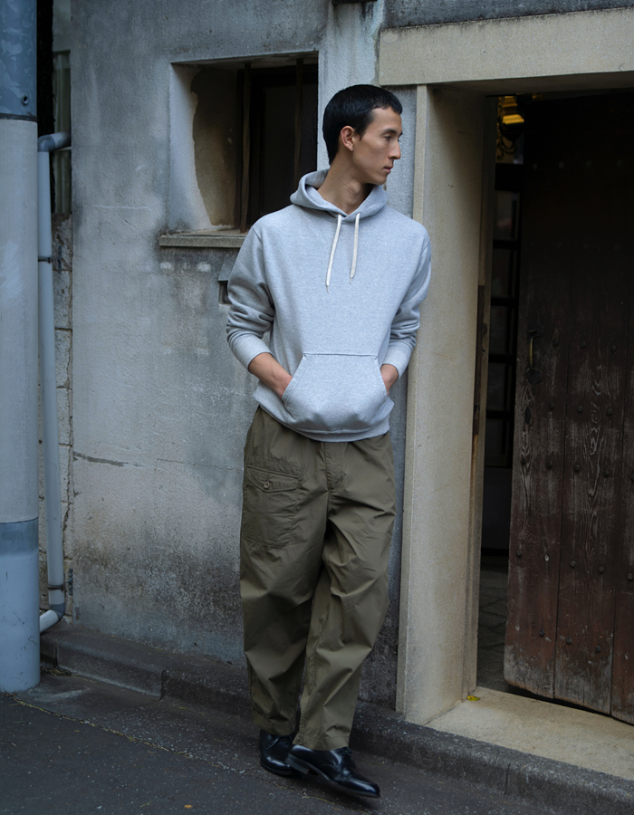 綿75%・麻25%のウェザー生地に、近江晒加工を施した素材を使用。程よいハリとナチュラルなシワ感があり、着用を重ねるほどに風合いが増していきます。ドライタッチな肌触りで夏場も快適な着心地です。