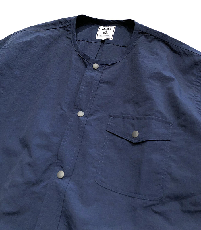 シャリ感とハリを併せ持つ「ライトシェルタフタ」を使用した、軽やかな着心地が魅力のノーカラーシャツ。無駄を削ぎ落としたミニマルなデザインは、シンプルながらも洗練された印象で、幅広いスタイリングに自然と馴染みます。