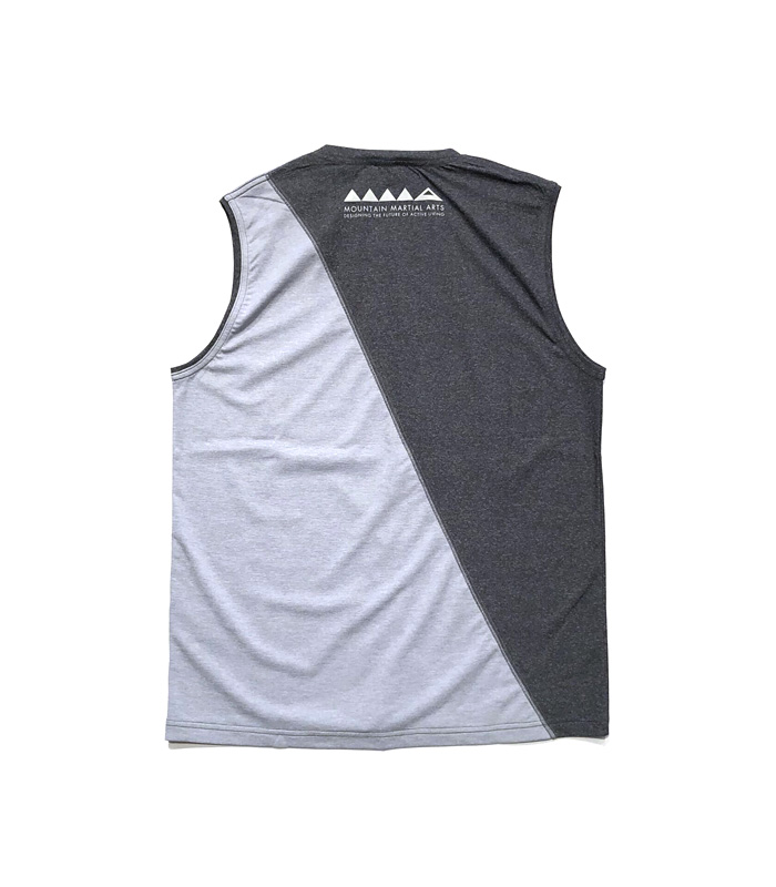 左右で素材とグラフィックを大胆に切り替えた、MMAらしい個性が際立つランニングスリーブレス。シンプルなウェアでは物足りないランナーに向けた、機能とデザインを高次元で融合した一枚です。