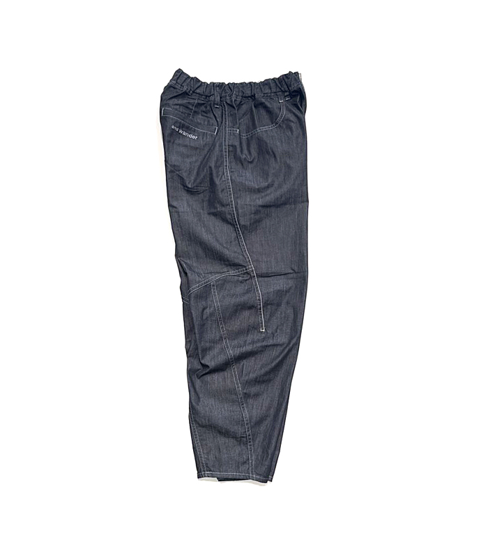 リラックス感のあるシルエットながら、素材と複雑なパターンでアンドワンダーらしい機能美をさりげなく感じさせ、街着としても使いやすいデニムパンツです。