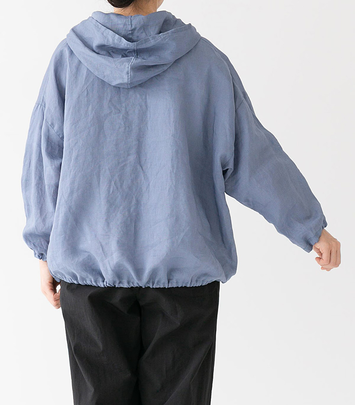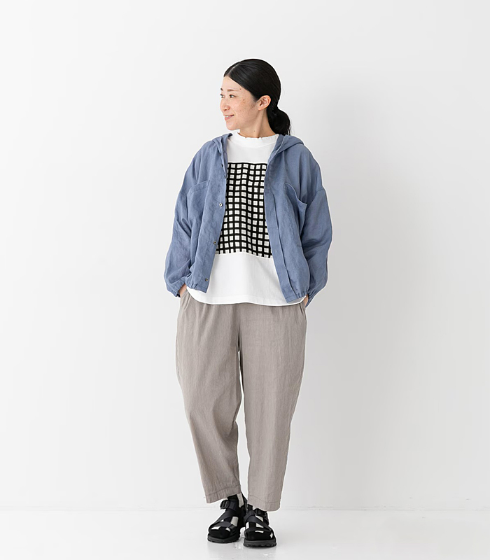 独特のくたり感と加工による落ち感が、体のラインにやさしくなじみ、リラックスした着心地を実現。麻100%ならではの通気性の良さで、気温の高くなる季節に快適に着用いただけます。