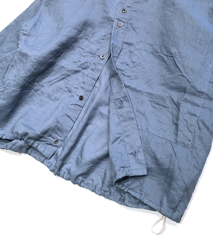 シャツの軽やかさにパーカーの遊び心を掛け合わせたデザインで、デイリー使いに取り入れやすいのもポイント。袖口と裾にはコードを配し、絞ることでシルエットの変化も楽しめます。上から 3つ目より下は比翼仕立てとなっており、すっきりとした印象に仕上げられています。