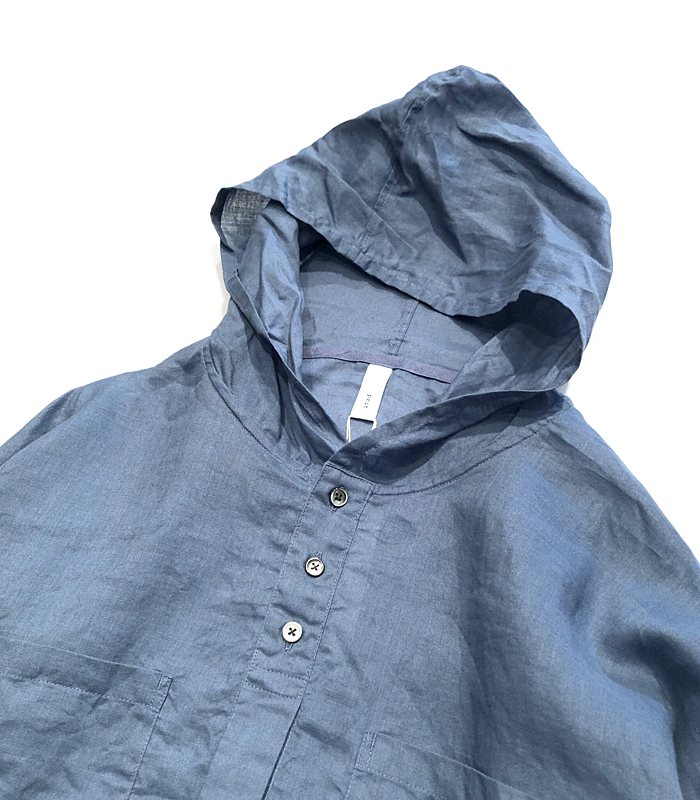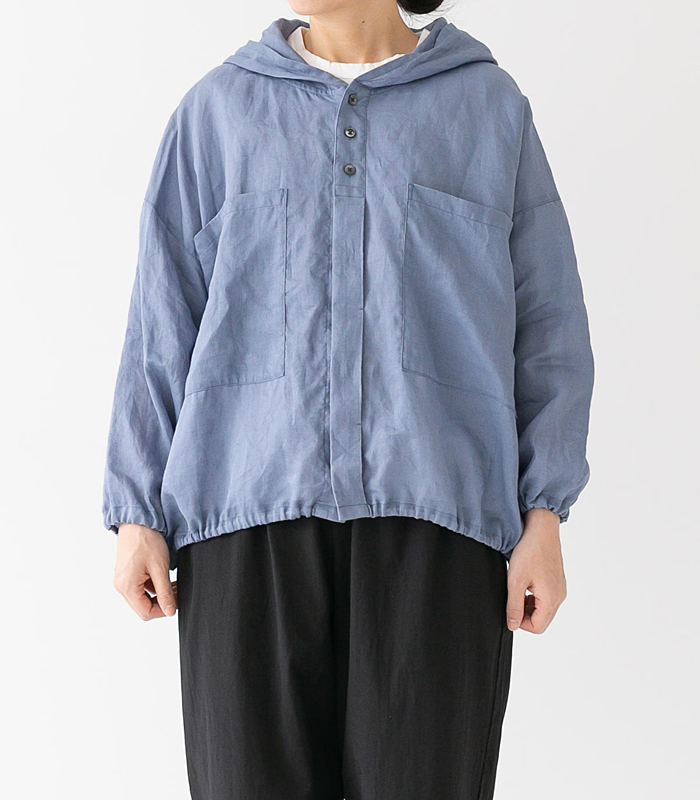 洗いざらしのようなやわらかな風合いが魅力の、ラミーバイオクロスを使用したフーディーシャツブルゾン。マットで落ち着いた質感の中に麻ならではの自然な表情が感じられ、さっと羽織るだけで雰囲気の出る一着です。