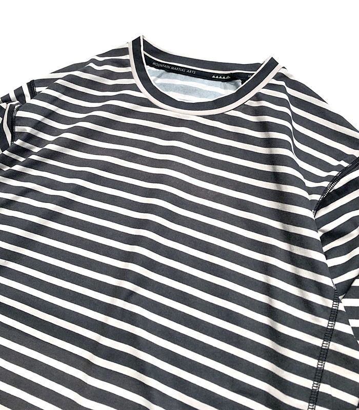 ランニングからタウンユースまで幅広く活躍する、MOUNTAIN MARTIAL ARTSのボーダーロングTシャツ。機能素材を使用しながらも、カジュアルで親しみやすいボーダーデザインに仕上げることで、日常のスタイリングにも自然に馴染む一枚です。