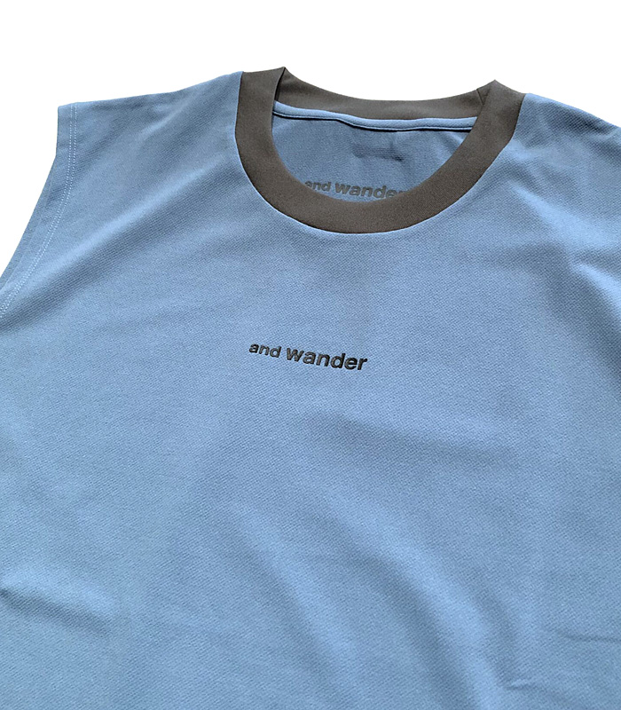 程よくゆとりのあるシルエットで動きやすく、単体でもレイヤードでも使いやすいバランス。小さくプリントされた「and wander」のロゴが洗練された印象をあたえます。シンプルながらも機能性をしっかり感じられる、夏場に活躍するアイテムです。