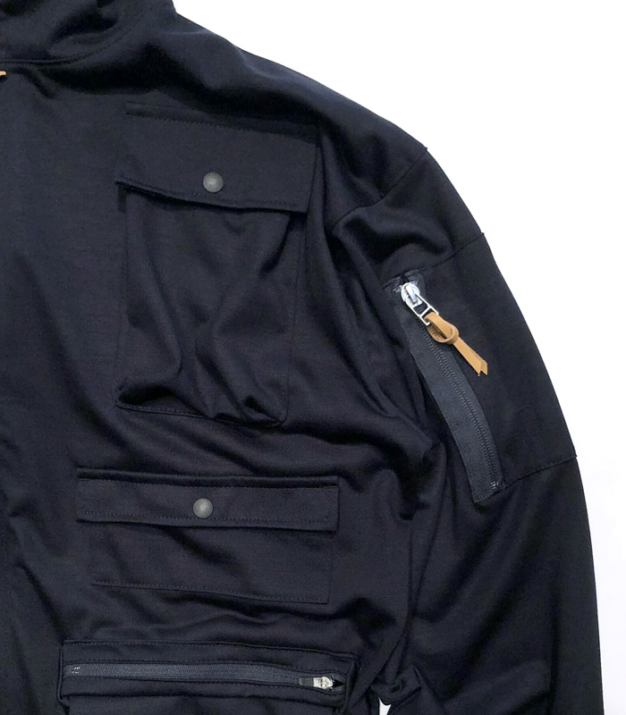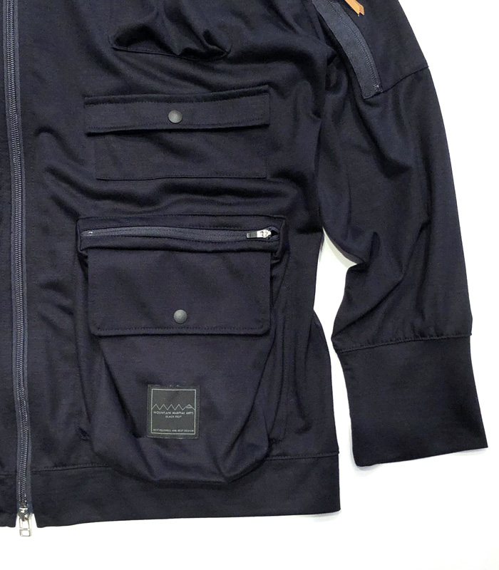 イタリアの老舗ファブリックメーカー「REDA」の高機能素材を使用した、MMAの中でも特別なライン「BLACK BELT」に属するマルチポケットフーディー。アクティビティ、ミリタリー、ファッションの要素を融合した、存在感のある一着です。