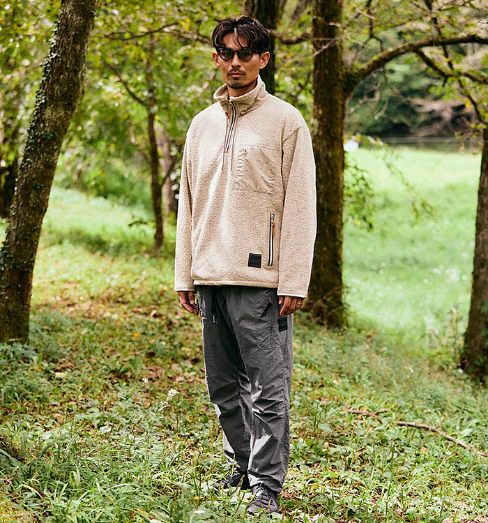 リラックス感のあるシルエットながら、素材と複雑なパターンでアンドワンダーらしい機能美をさりげなく感じさせ、街着としても使いやすいデニムパンツです。
