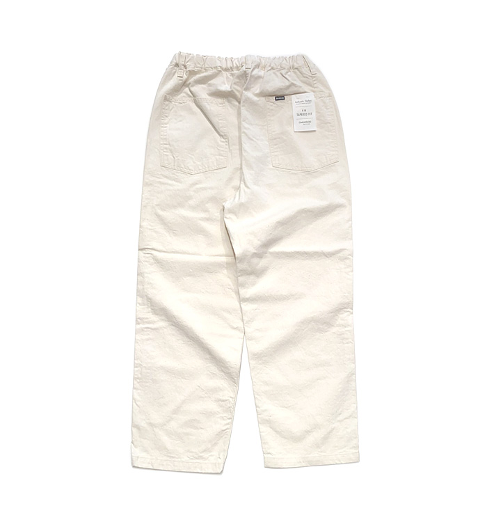 ワタリから裾にかけて緩やかにテーパードしたシルエットは、ラフになりすぎず、絶妙なバランス。カジュアルながらも雰囲気のある一本で、OMNIGODを代表する売れ筋パンツとして長く支持されている定番モデルです。