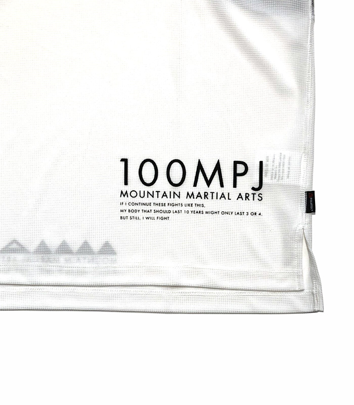 本体素材には、アウトドアシーンで高い信頼を誇るPOLARTEC® Power Dryを使用。独自のグリッド構造が汗を効率よく吸収・拡散・蒸発させ、優れた吸水速乾性を発揮します。UVカット機能も備え、しなやかな素材感で長時間の行動でも快適な着心地をキープ。ゼッケンを装着する胸元ではなく前面下部に格闘家の名言をプリントし、レース仕様としての実用性にも配慮しています。